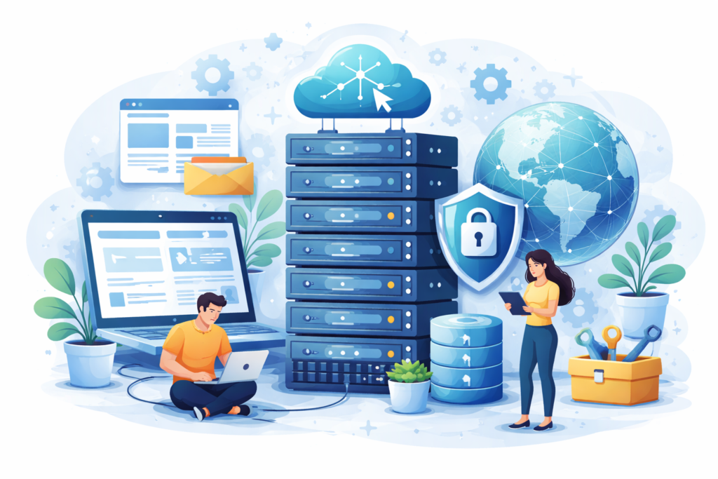 بعد اختيار العنوان (الدومين)، حان الوقت لاختيار “الأرض” التي ستُبنى عليها جدران موقعك، وهي استضافة الويب. الاستضافة ببساطة هي خادم (Server) بمواصفات قوية يعمل على مدار الساعة لتخزين ملفات موقعك ومعالجتها ليكون متاحاً للزوار في أي وقت ومن أي مكان.