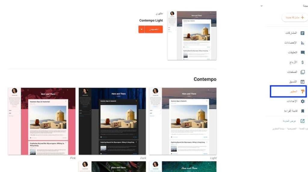 بعد الدخول إلى قسم “المظهر”، ستفتح لك عالم من التصاميم الاحترافية. من المهم عند اختيار قوالب مدونات بلوجر أن تبحث عن التنسيق الذي يعكس هوية محتواك ويسهل على الزوار القراءة.