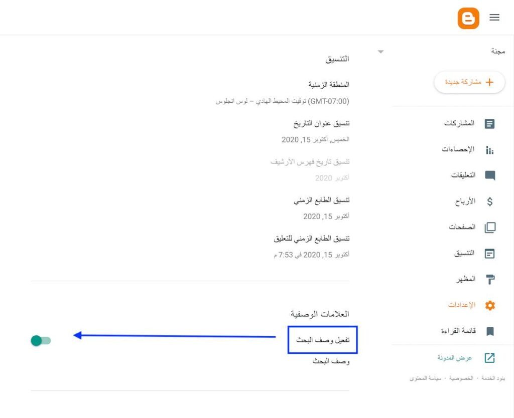 4. أضف وصفاً مختصراً وجذاباً للمدونة بشكل عام، واحرص على كتابة وصف خاص لكل “مشاركة” جديدة تقوم بنشرها.