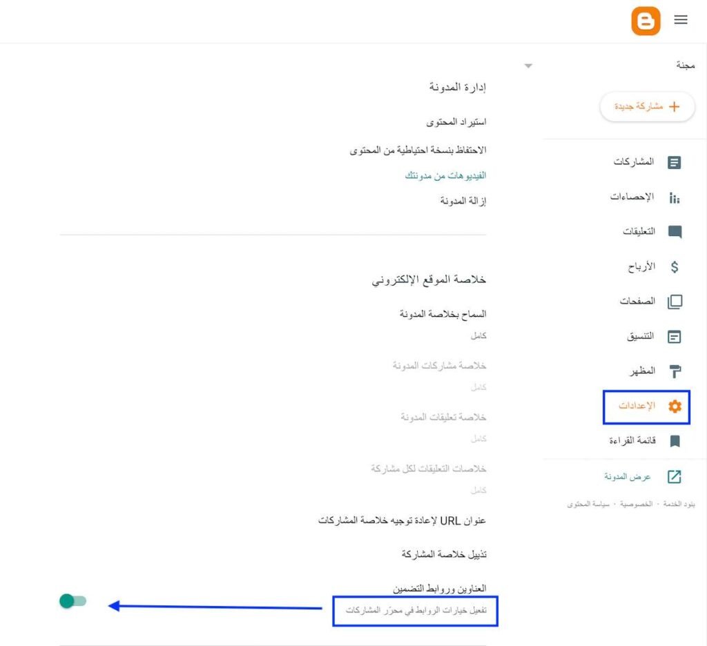 كيفية تفعيل الرؤية لمحركات البحث: من لوحة التحكم في بلوجر، توجه إلى القائمة اليمنى واتبع الآتي: